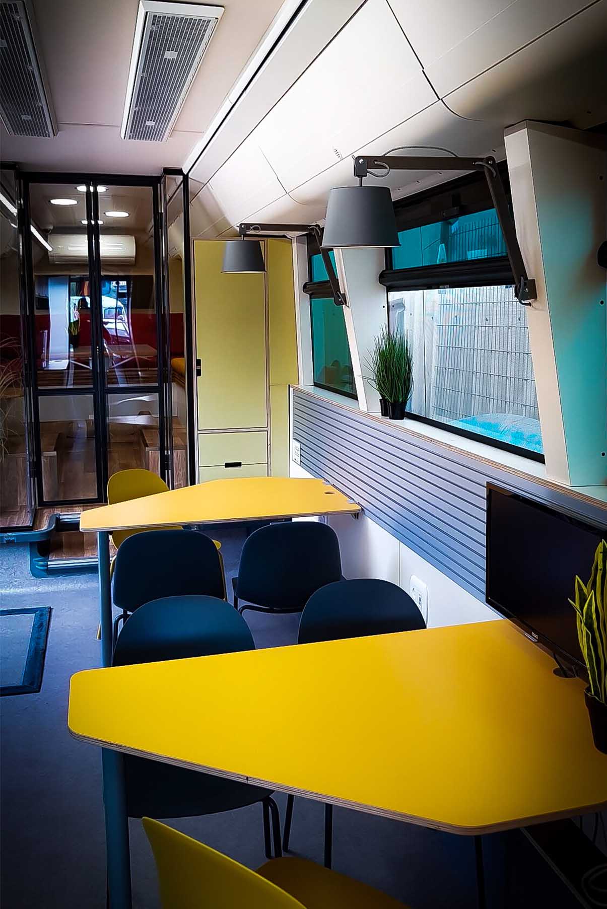 תכנון משרד נייד המאפשר גישה לאוכלוסיות שונות, הוא פרויקט חדשני ומורכב שכלל אתגרים הנדסיים רבים, פירוק והרכבה מחדש של פנים האוטובוס, עבודות חשמל, מיזוג ותקשורת.
