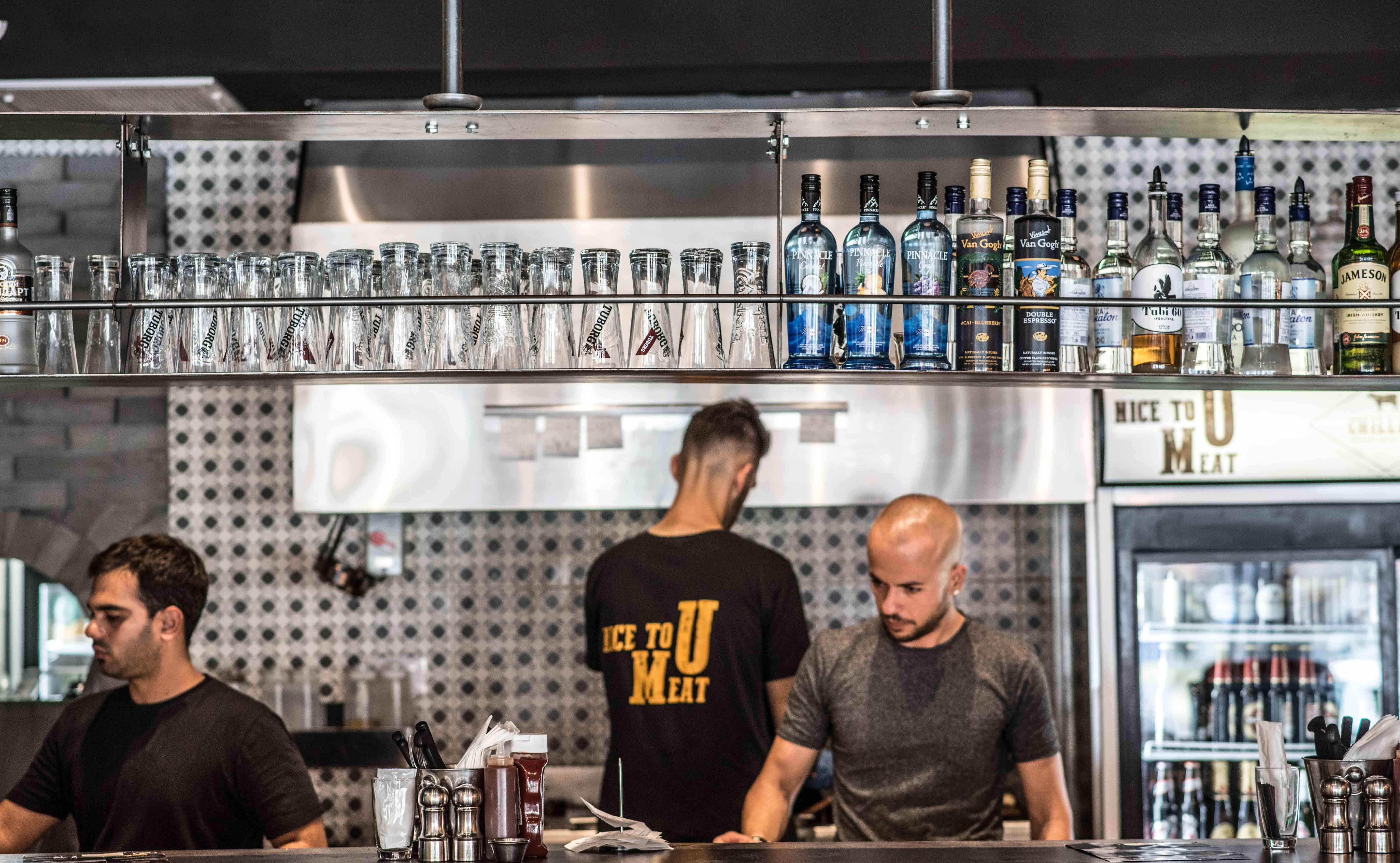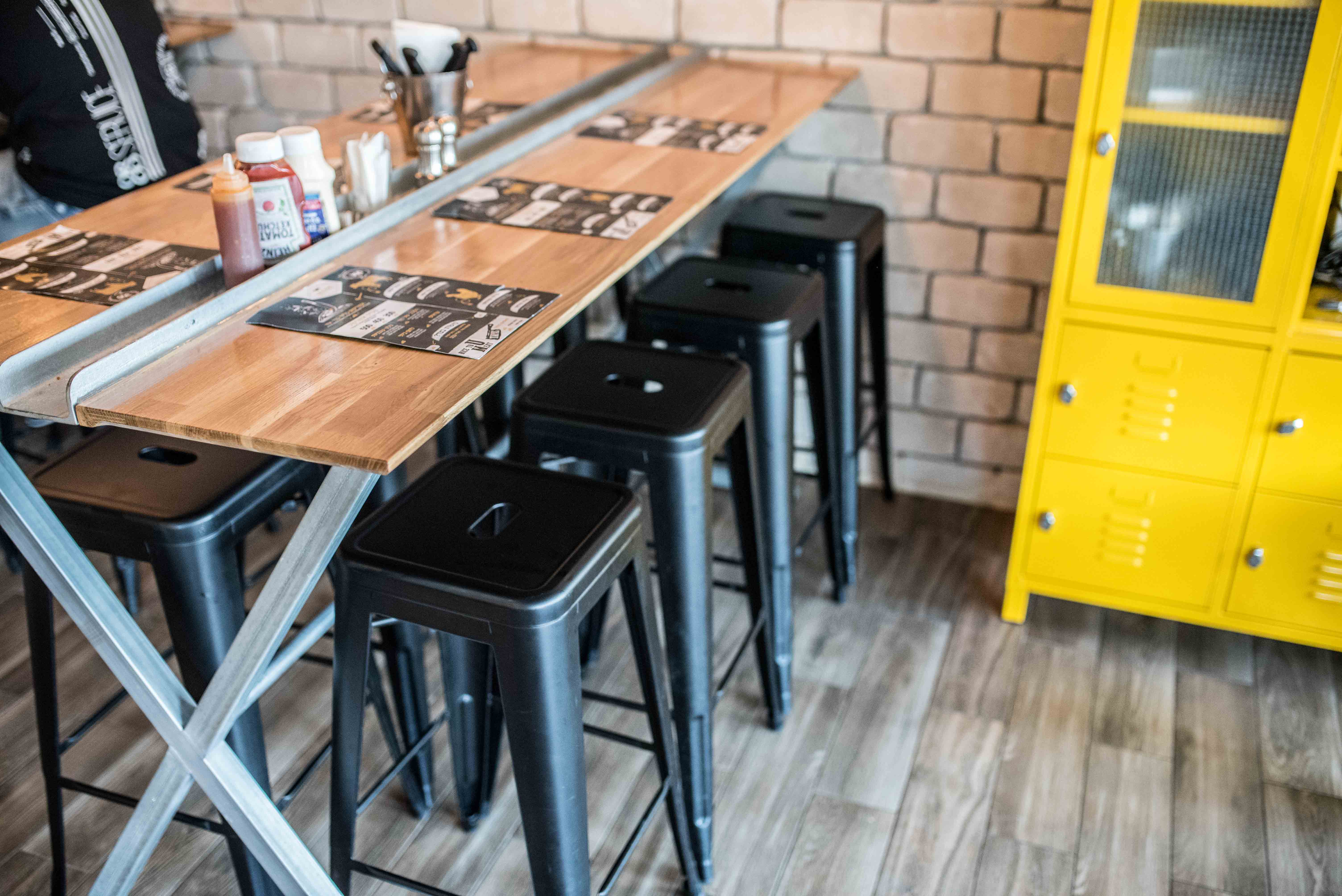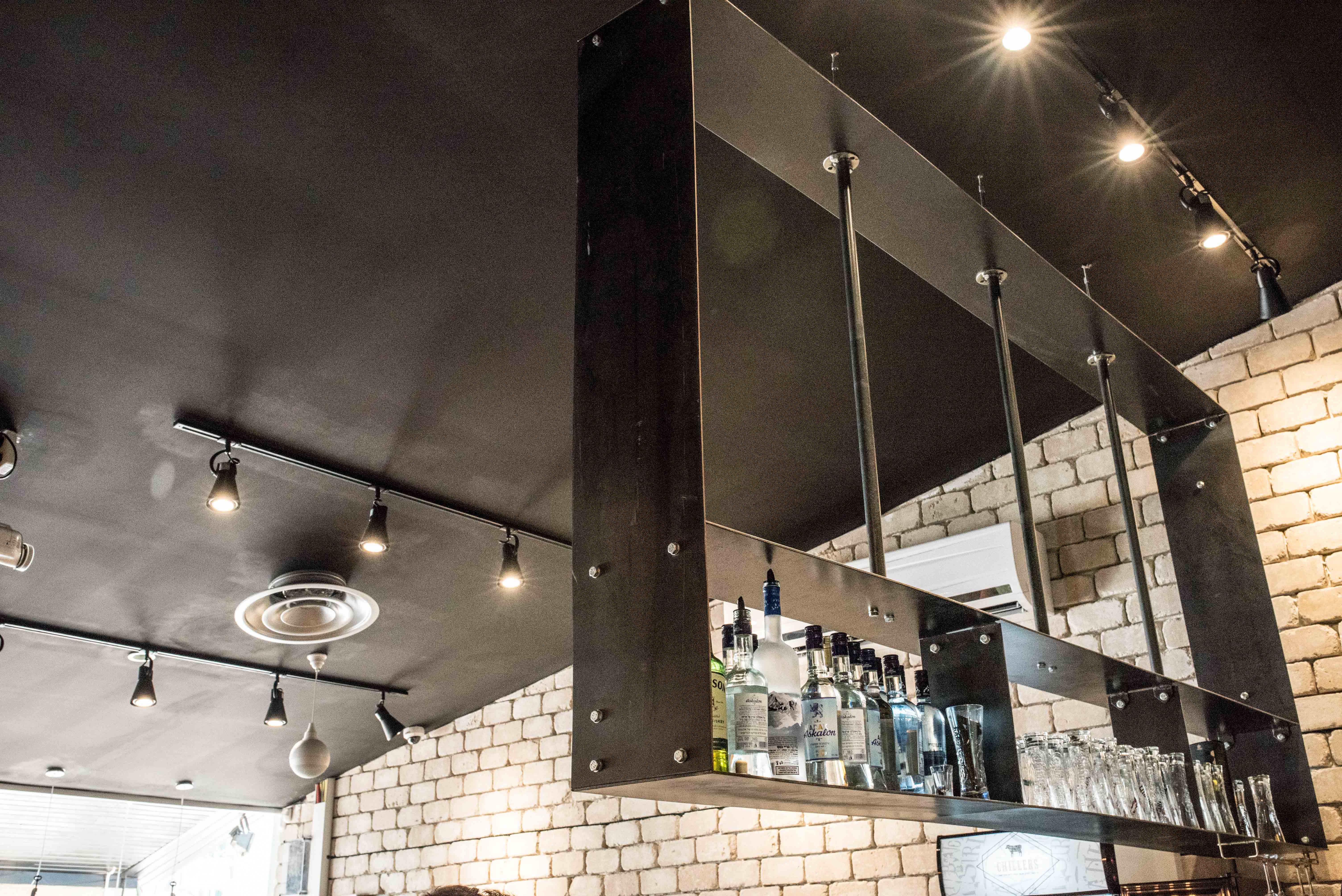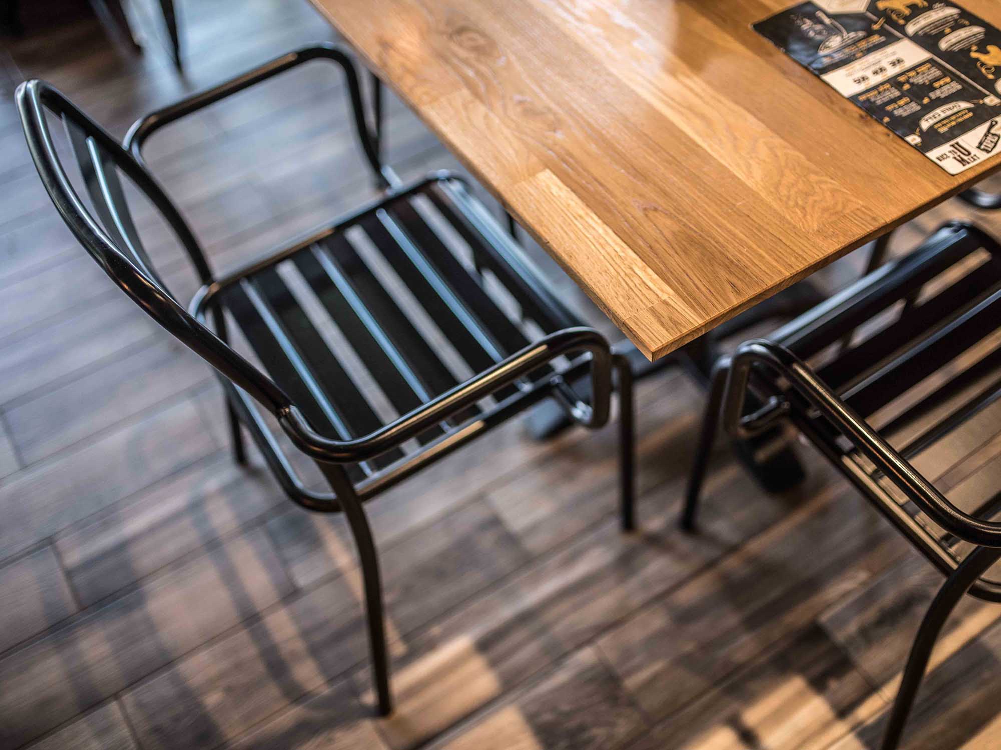 למסעדה עיצבנו פריטי ריהוט העשויים מתכת ומשולבים בעץ בעלי אופי תעשייתי, יצרנו אלמנטים עיצובים שונים ולא קונבנציונליים כדוגמת המנורות שנוצרו ממטחנות בשר ישנות, תוך הקפדה על צבעים חמימים ותחושת יוקרה.