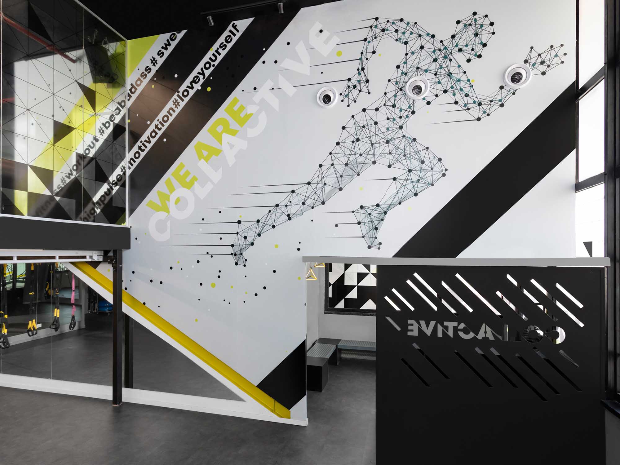 יצירת חלל פתוח ומשותף ברוח אימוני המקום, תוך שילוב אזורים מוסתרים ואישיים, תאורה, טפטים ואופי גרפי מוקפד נועדו ליצור חווית אימון שהיא חדשנית ואקסקלוסיבית למועדון COLLACTIVE.